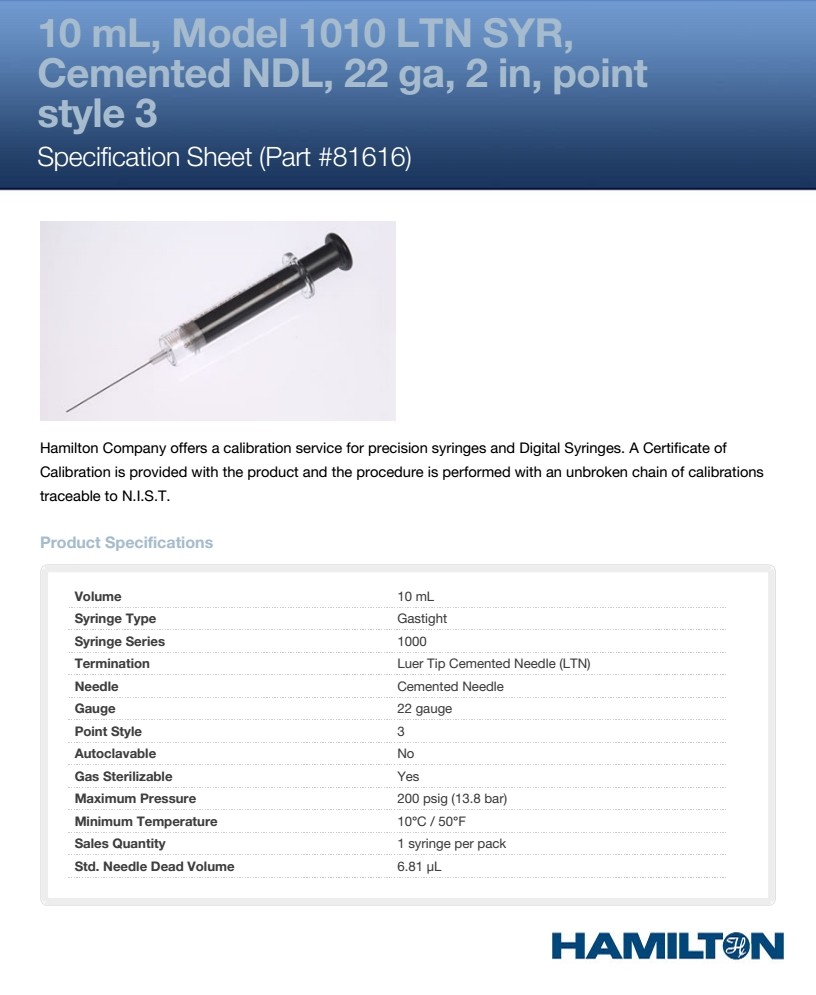 样品锁进样针